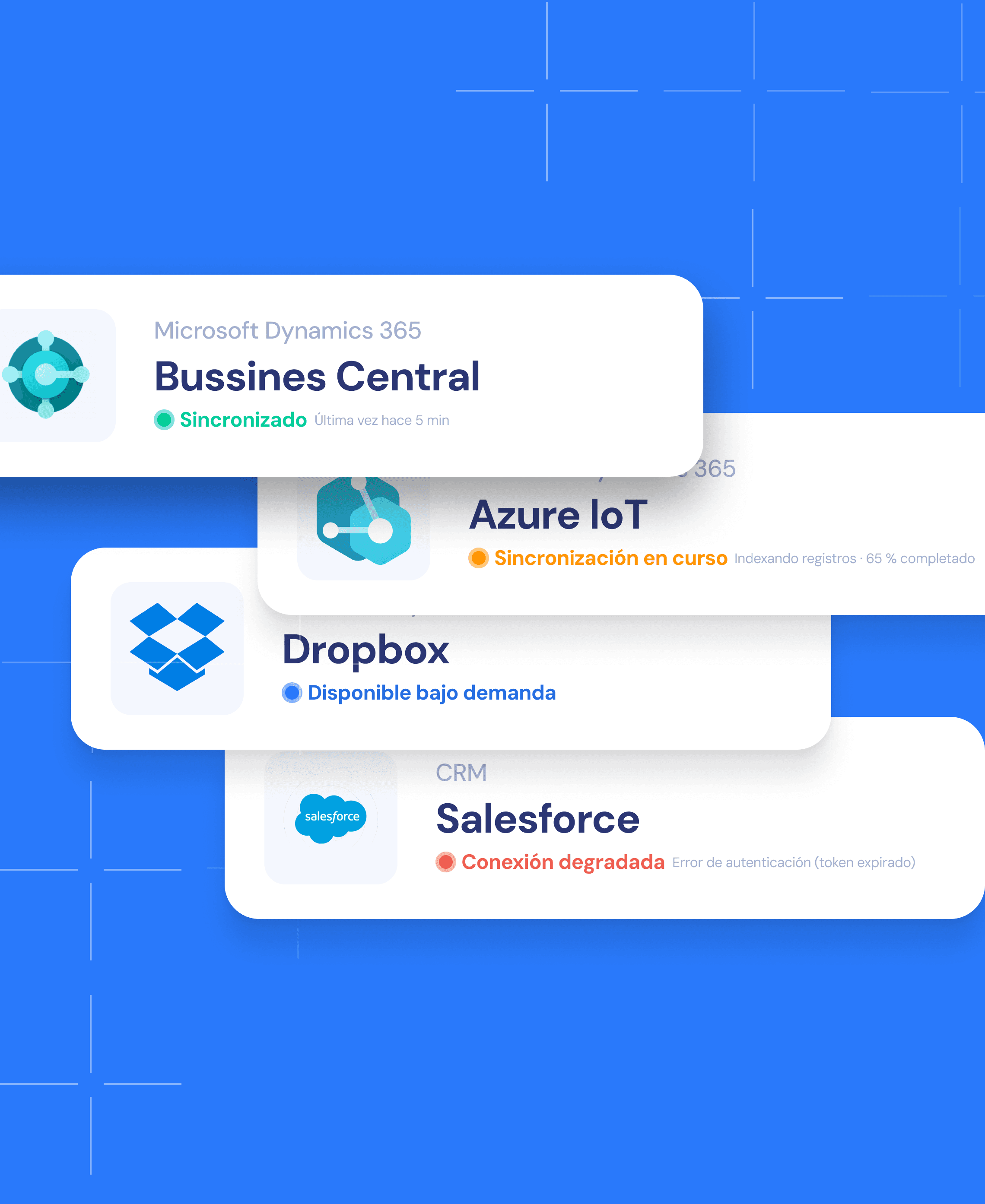 Integración directa con ERP, CRM, OT, IoT y plataformas documentales.